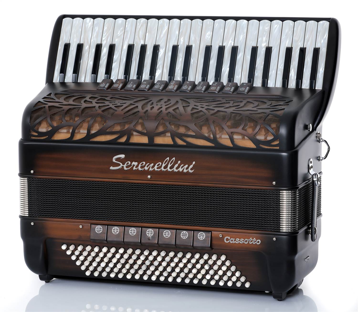 | Modell | Cassotto | Tasten | Bässe | Stimmplatten | Chöre | Eigenschaften | Register | Maße (cm) | Gewicht (kg) |